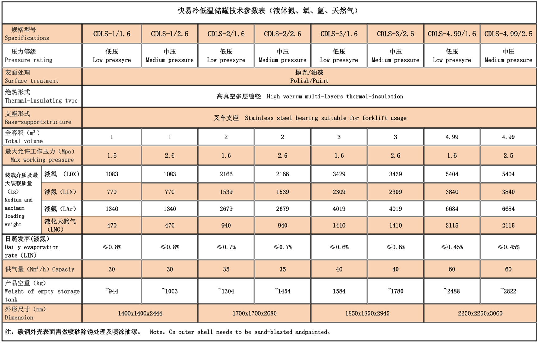 氮氧氬快易冷小型低溫貯罐的技術(shù)特點(diǎn):