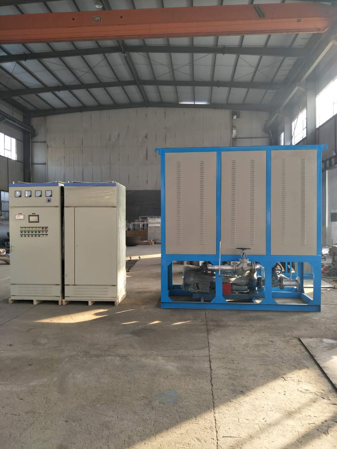 電加熱導(dǎo)熱油爐是一種新型、安全、高效節(jié)能,低壓(常壓下或較低壓力)并能提供高溫?zé)崮艿奶胤N工業(yè)爐,是一種以電為熱源,導(dǎo)熱油為熱載體,利用循環(huán)油泵強制液相循環(huán).將熱能輸送給用熱設(shè)備后.繼而返回重新加熱的直流式特種工業(yè)爐,如此周而復(fù)始,實現(xiàn)熱量的連續(xù)傳遞,使被加熱物體溫度升高,達(dá)到加熱的工藝要求。